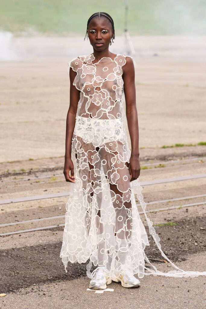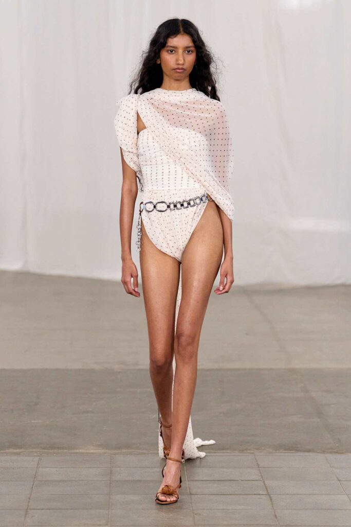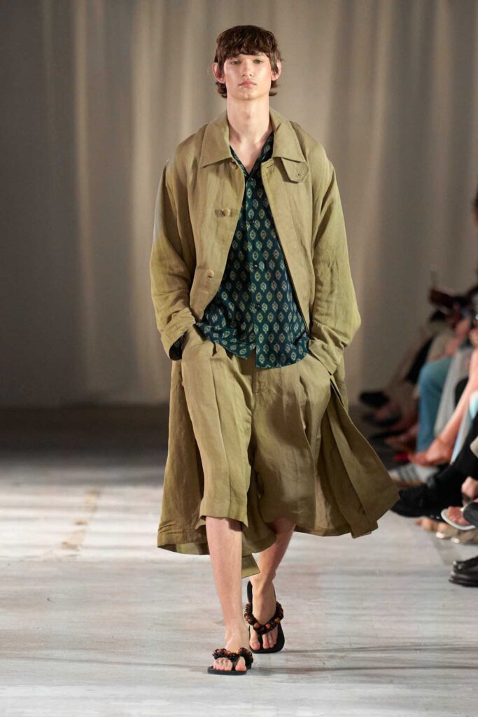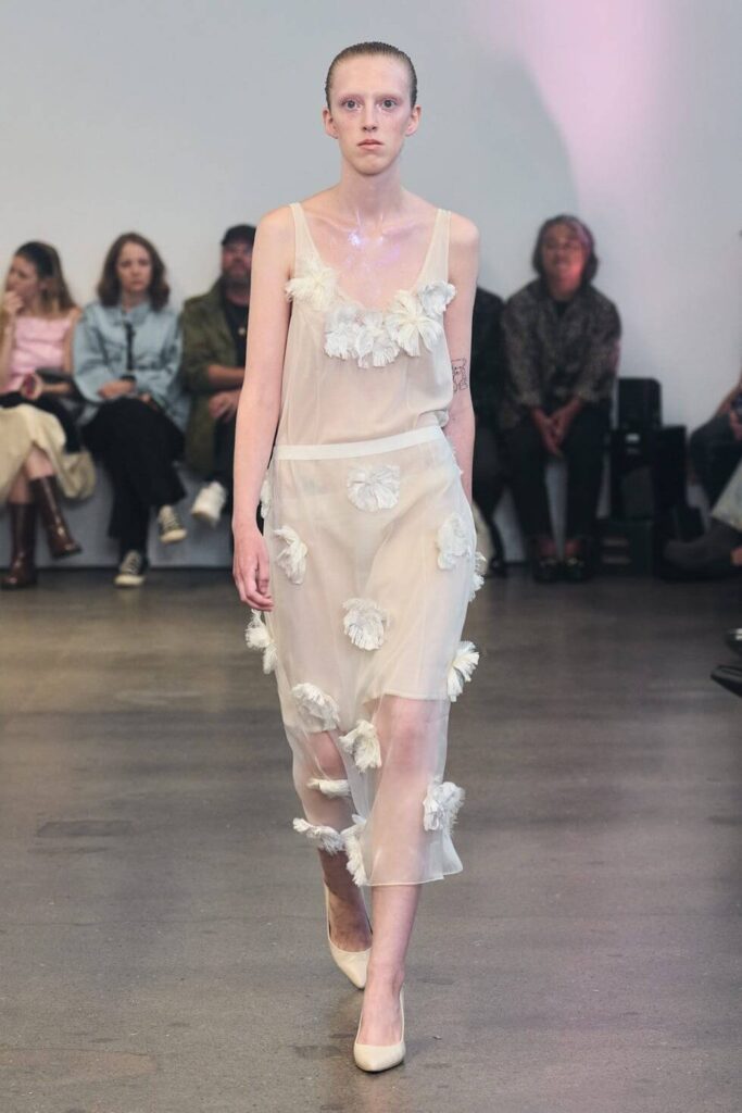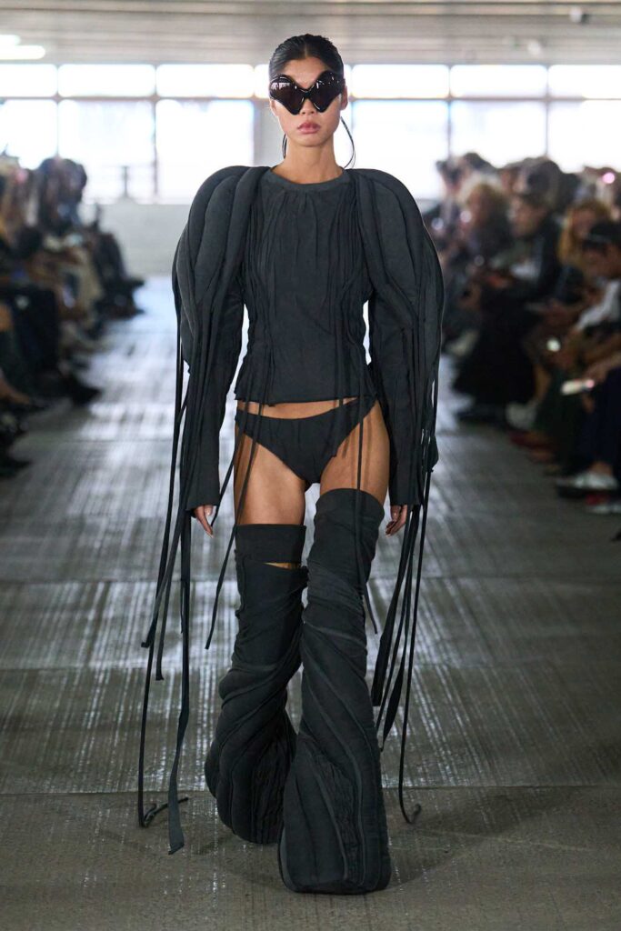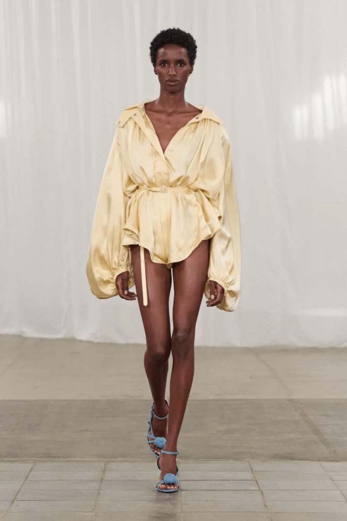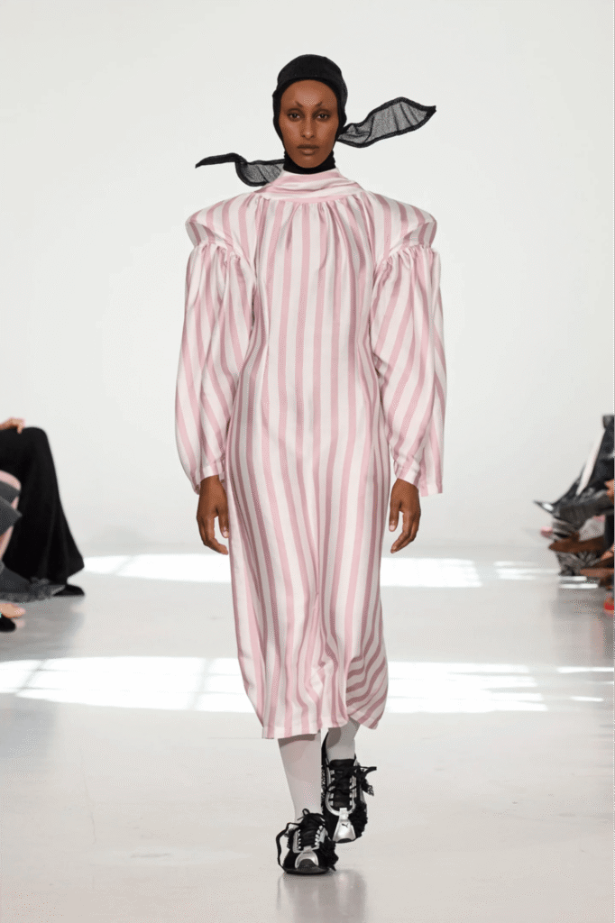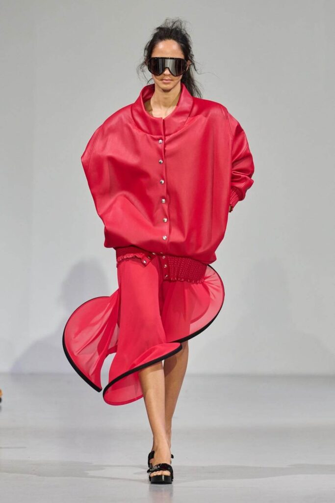 A temporada evidenciou a disruptura da moda tradicional. A alfaiataria escandinava, reconhecida por sua precisão e minimalismo, ganhou nova personalidade ao adotar silhuetas autorais e inovadoras que desafiam o tradicionalismo do vestuário formal, combinando a rigidez das estruturas clássicas com a leveza dos tecidos fluidos. Nas passarelas, os designers exploraram esse contraste ao apresentar peças em que cortes precisos dialogavam com materiais delicados, como chiffon e seda, criando um jogo visual entre o rígido e o maleável. Os resultados foram composições que evidenciaram a técnica refinada da alfaiataria, em conjunto da liberdade criativa sem precedentes na moda escandinava contemporânea.