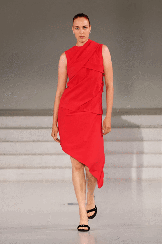 A Copenhagen Fashion Week reforçou seu protagonismo global na pauta da sustentabilidade ao integrar, de forma estratégica, avanços tecnológicos e práticas circulares. Entre os destaques, esteve o uso da impressão 3D como recurso para reduzir o impacto ambiental da produção, ampliar a personalização das peças e expandir as possibilidades criativas. Um exemplo emblemático foi a colaboração entre Opéra Sport, Havaianas e Zellerfeld, que resultou na confecção de chinelos anatômicos e solados macios, produzidos com materiais reciclados. O evento também consolidou o design circular como um paradigma em ascensão, propondo que os ciclos de vida das peças sejam pensados de maneira integral, buscando unir estética, funcionalidade e compromisso socioambiental, estabelecendo novos padrões para uma indústria historicamente marcada pelo consumo acelerado. Outro eixo relevante foi a adoção de tecidos deadstock excedentes de materiais que, de outra forma, seriam descartados. Marcas como Anne Sofie Madsen e Freya Dalsjo se destacaram ao reaproveitar retalhos e resíduos da indústria têxtil, preservando a qualidade e a estética de luxo, atribuindo singularidade e história às peças.