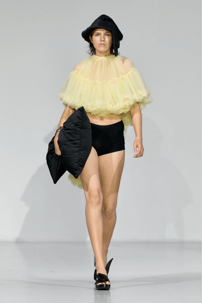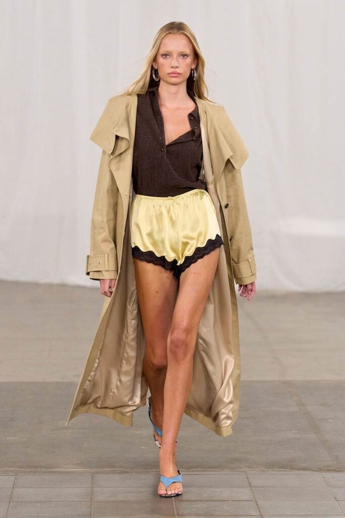 O oversized manteve seu protagonismo e transitou do formal ao casual, com o streetwear atingindo novo patamar ao ser reinterpretado com materiais que receberam acabamentos manuais e artesanais. Embora essa influência traga peças com modelagens amplas, calças longas e saias ao comprimento do joelho, collants de corte alto e microshorts foram o grande destaque. Marcas como Alis, Rotate Birger, Herskind e Cmmn Swdn optaram por trazer referências do streetwear na parte supeior – com jaquetas grandes, moletons e casacos extra g, e shorts com modelagens justas e curtas na parte inferior. Além disso, a aproximação entre moda e esporte tem se intensificado ao longo dos anos – traduzida pelo uso de camisetas e bermudas esportivas – clara resposta à crescente prática de exercícios físicos ao ar livre, principalmente em grupos, devido à alta introspecção humana em consequência dos avanços tecnológicos digitais. As marcas Fine Chaos, Alis e Han Kjobenhavn revisitaram coletes de futebol, incorporando logotipos e slogans como elementos centrais, enquanto Gestuz explorou o universo automobilístico com jaqueta inspirada na Fórmula 1.