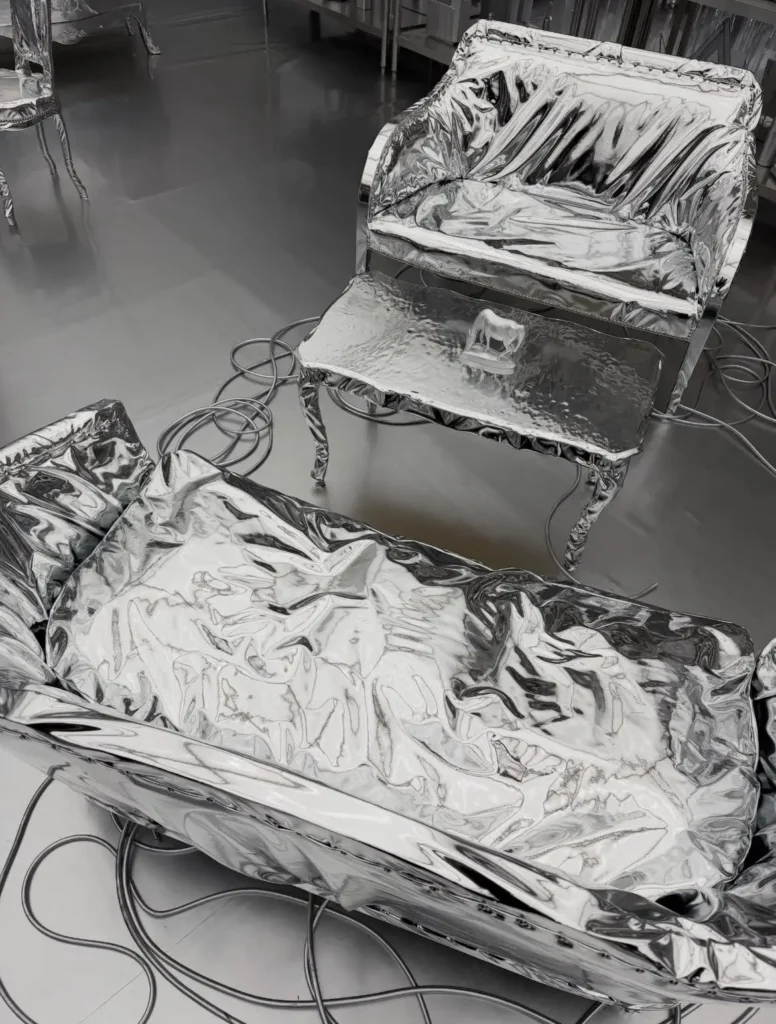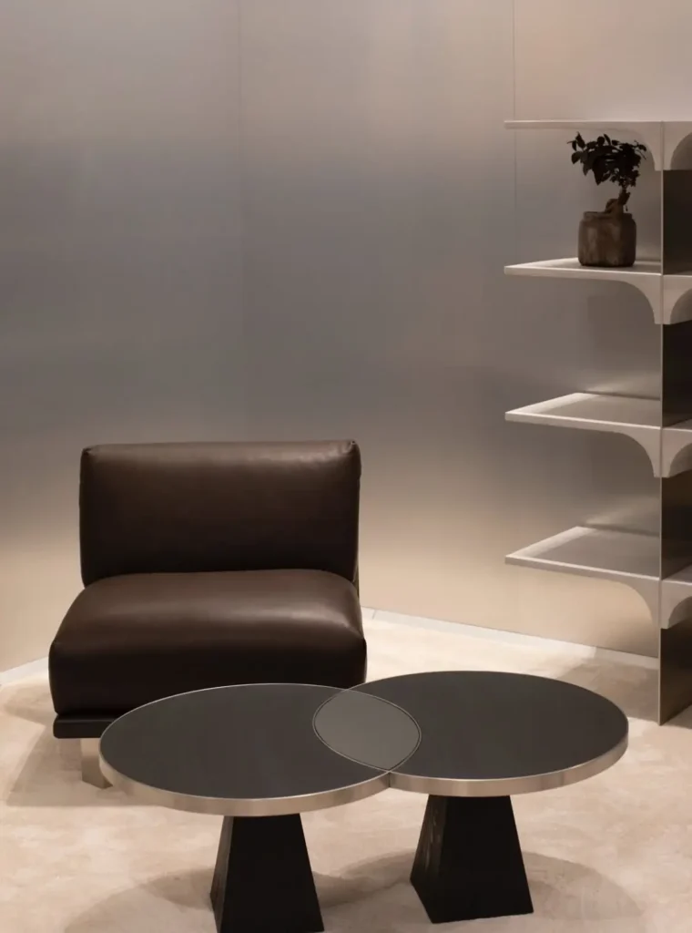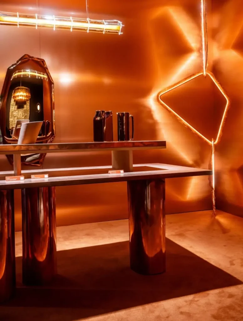 Superfícies cromadas e o cobre ressurgem como códigos de modernidade atualizada, conectando referências do modernismo histórico a uma estética contemporânea, precisa e urbana. O brilho metálico passa a ser explorado de forma mais arquitetônica e conceitual, aplicado em mobiliário, detalhes construtivos e objetos que equilibram frieza técnica e sofisticação visual. O cobre, em especial, adiciona calor ao discurso metálico, criando contrastes entre reflexo, materialidade e luz.