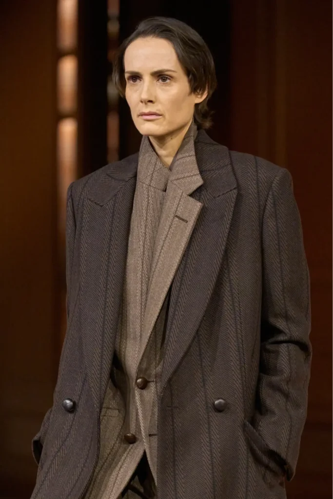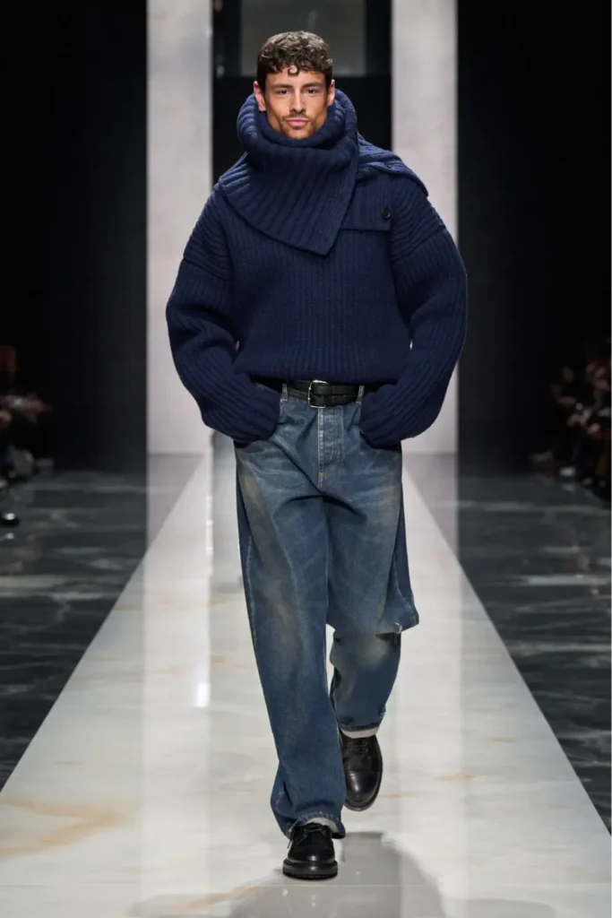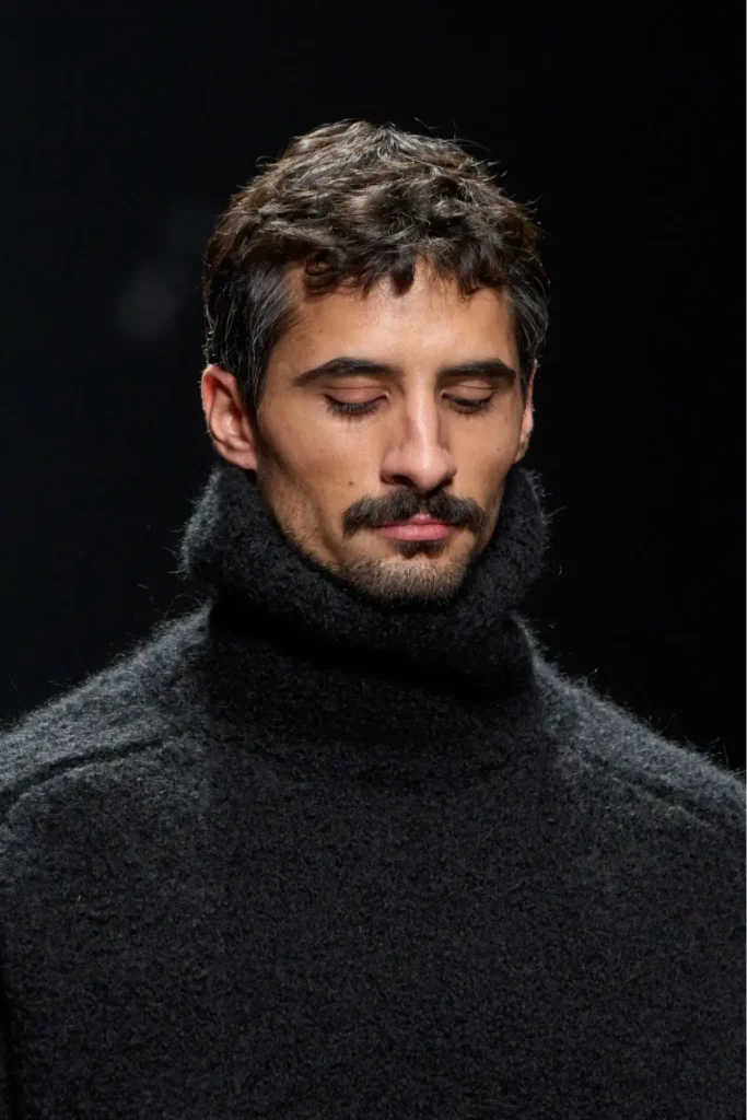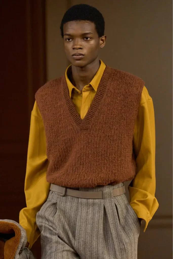As silhuetas masculinas de 2026 refletem uma revisão profunda dos códigos de estrutura e formalidade. O tailoring permanece como peça central do guarda-roupa, porém assume proporções mais amplas e menos rígidas, abrindo espaço para uma leitura contemporânea de conforto e liberdade. Elementos como a gola alta oversized reforçam a ideia de presença, enquanto as camadas deixam de ser meramente funcionais para se tornarem construções arquitetônicas intencionais. Coletes, malhas e sobretudos são combinados de forma calculada, explorando contrastes de textura e volume para enfatizar proporções e criar narrativas visuais mais complexas.