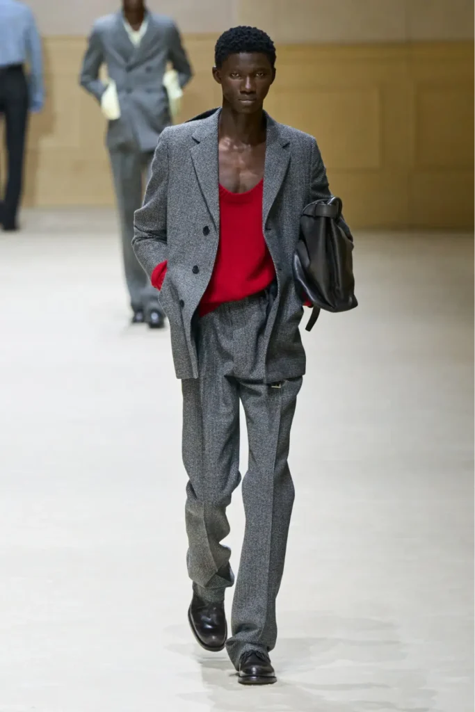 Entre os destaques esperados estiveram a atualização da alfaiataria, o avanço de propostas híbridas entre o casual e o formal, o uso estratégico de tecnologias têxteis e a consolidação da sustentabilidade como pilar estrutural, não mais como discurso acessório. No aspecto conceitual, o macrotema da temporada refletiu com precisão o espírito do tempo. As passarelas traduziram um mundo marcado por instabilidade social, econômica e emocional, propondo uma moda menos rígida, mais fluida e adaptável. Silhuetas ampliadas, construções confortáveis e a redução de códigos excessivamente formais indicaram uma busca por liberdade de movimento e autonomia individual. Em um cenário em que a força já não se expressa apenas pela estrutura, mas também pela flexibilidade, a moda masculina avançou para um estágio mais funcional, pragmático e sensível às reais necessidades do cotidiano.