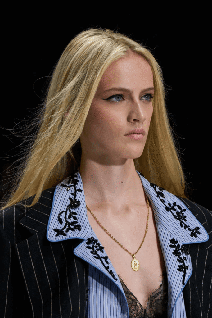 Se por um lado o gel e os acabamentos polidos dominaram parte das passarelas milanesas, por outro, o contraponto veio com a celebração dos cabelos soltos e despretensiosos, reafirmando a força da estética do “sem esforço”. Versace apostou em comprimentos volumosos e penteados laterais, Roberto Cavalli em fios texturizados e MM6 Maison Margiela em cabelos desgrenhados.